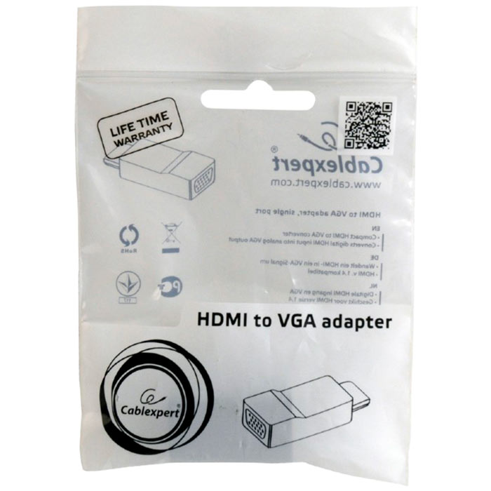 Переходник Cablexpert A-HDMI-VGA-001 прост в установке и предназначен для соединения любых HDMI-устройств с VGA-монитором Выходное разрешение видео не ухудшается относительно входного Преобразует видео поток HDMI в VGA сигнал Совместимо с версией HDMI v.1.4
