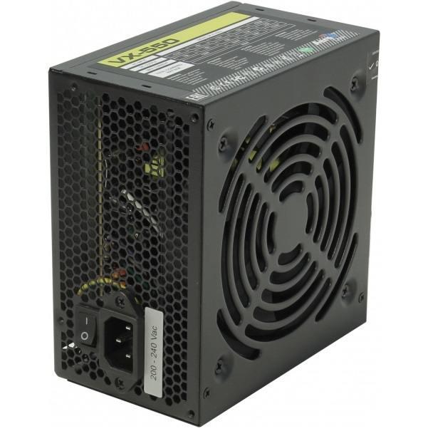 Блок питания Aerocool VX 550W PLUS [VX-550 PLUS] - надежная модель, отличающаяся превосходной производительностью и стильным внешним видом. В лице этого устройства комплектующие элементы компьютера получат необходимый источник электроэнергии, а системный блок - еще одно устройство с оригинальным дизайном. Помимо документации модель укомплектована сетевым кабелем питания и крепежными винтами для надежного размещения блока питания внутри корпуса компьютера. Имеется активный вентилятор охлаждения с размерами 120x120 мм. Блок питания Aerocool VX 550W PLUS [VX-550 PLUS] оснащен кабелем питания длиной 50 см с разъемом 20+4 pin и кабелем длиной 55 см с интерфейсом 1x 4+4 pin на конце для обеспечения электроэнергией процессора. Для питания видеокарты используется разъем 1x 6+2 pin. Также конфигурация рассматриваемой модели предусматривает три разъема 15-pin SATA, три интерфейса 4-pin Molex и один разъем 4-pin для питания дисковода. Устройство имеет стандартный диапазон входного напряжения сети - 230 В.
