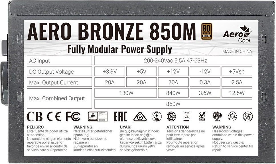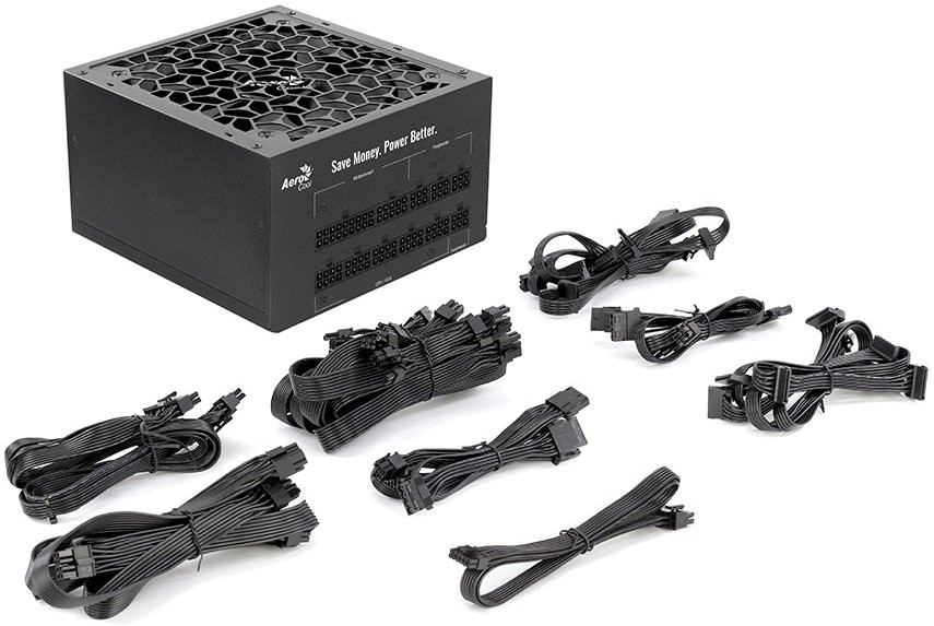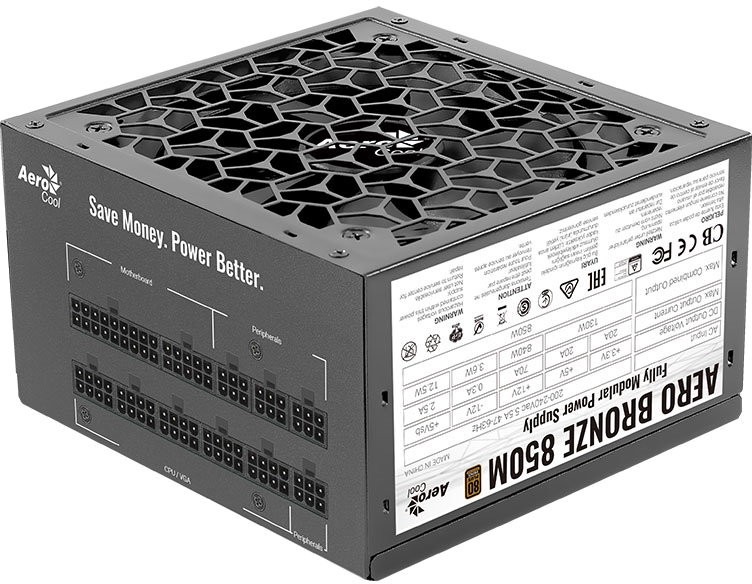 Блок питания AeroCool AERO BRONZE 850M [ACPB-AR85AEC.1M] представляет собой решение в формате ATX с полностью модульной конструкцией, которое за счет своих возможностей может стать отличным выбором для высокопроизводительных систем, предназначенных для решения любых задач. Благодаря запасу мощности в 850 Вт и высокому КПД данная модель позволяет использовать самые разные компоненты. Блок питания также отличается высокой надежностью и отказоустойчивостью, что обусловлено использованием высококачественных компонентов и материалов. Модель поддерживает широкий ряд технологий защиты и оснащена активной системой охлаждения для обеспечения оптимального температурного режима даже при интенсивной нагрузке. Блок питания AeroCool AERO BRONZE 850M также отличается широкими возможностями для подключения комплектующих. Для этого на корпусе предусмотрен широкий набор различных разъемов, среди которых есть несколько выходов для процессора, графического ускорителя, SATA- и других устройств. Комплект поставки включает в себя набор гибких и прочных кабелей.