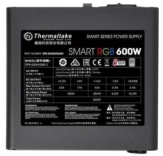 Серия блоков питания Thermaltake Smart RGB укомплектована вентилятором с RGB подсветкой на 256 цветов имеющей 15 различных режимов иллюминации. Благодаря встроенной памяти, выбранный режим сохранится после выключения ПК. Блок питания имеет сертификат 80 PLUS и в своей основе имеет компоненты высокого качества, так необходимые для бесперебойной работы любой системы. Идеально подходит для сборок класса мейнстрим.