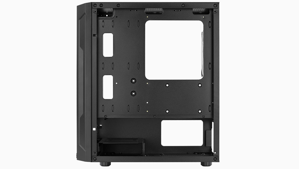 Несмотря на компактный форм-фактор (Mini Tower), этот корпус позволяет собрать систему практически любого уровня производительности. На платформу можно поставить даже горячее геймерское железо продвинутого класса, штатная система охлаждения легко стабилизирует работу мощных комплектующих. За решетчатой передней панелью установлено два вентилятора диаметром 140 мм. Еще одна лопастная крыльчатка, но на 120 мм, смонтирована на задней стенке. Шасси позволяет разместить материнскую плату формата Micro-ATX либо Mini-ITX. При этом в корпусе предостаточно места для монтажа производительной графики и мощного процессора. Компьютерный корпус Aerocool Trinity Mini V2 позволяет построить видеосистему на основе дискретной платы длиной до 297 мм. Для охлаждения CPU можно поставить башню высотой до 158 мм. В роли блока питания можно использовать любое ATX-решение длиной до 159 мм. При этом для установки БП выделено специальное место, под защитным кожухом. Для улучшения декоративной ценности корпуса производитель предусмотрел в штатных вентиляторах FRGB-подсветку. Старшая модификация данного корпуса, которая называется Mini V2, отличается наличием настраиваемой подсветки ARGB.