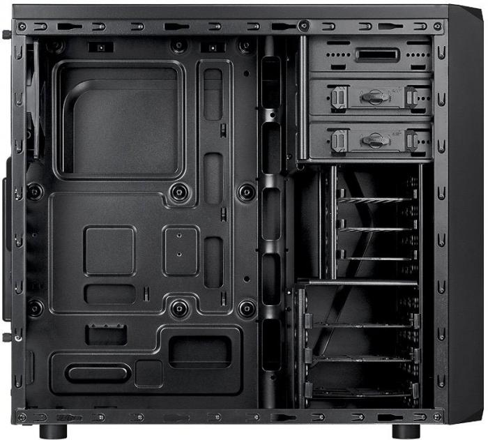 Корпус Thermaltake Versa H25 черного цвета выполнен в форм-факторе Midi-Tower и приспособлен для установки материнских плат типа Standard-ATX со всеми комплектующими и прочего компьютерного оборудования. В этом корпусе, имеющем немалый потенциал, можно собрать как домашний или офисный, так и продвинутый игровой компьютер с производительными элементами. Корпус укомплектован одним вентилятором для отвода излишнего тепла от работающего оборудования, еще несколько вентиляторов можно установить в разных местах.Блок питания для системного блока, собираемого в корпусе Thermaltake Versa H25, может быть подобран согласно Вашим предпочтениям и потребностям установленных комплектующих в энергии. Корпус собран из черных стальных пластин и выглядит одновременно просто и эффектно, он уже оснащен некоторыми портами и разъемами. Также в комплекте с ним Вы получите крепеж для фиксации платы и других деталей на положенных местах.