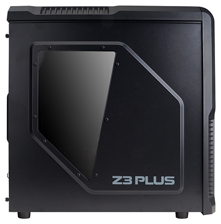 Корпус ZALMAN Z3 Plus имеет геймерские нотки в дизайне благодаря небольшому окну на боковой стенке корпуса, а достаточное количества места внутри позволять разместить даже видеокарту размером до 360 мм. Качественная сборка из стали с небольшими вставками пластика выполнена без лишних больших засоров. На передней панели расположена два отсек для 5.25\" и один отсек для 3.5\" закрытые заглушками. Ниже всю остальную область занимает решетка, под которой расположен один вентилятор с подсветкой, так же возможно установить дополнительный под ним. На верхней панели располагается фигурная решетка, под которой расположены два вентилятора (оба в комплекте) и глянцевая панель с разъемами USB 2.0 в количестве две штуки, USB 3.0, разъем для наушников и микрофона и ниже в ряд расположены кнопки перезагрузки и питания, так же здесь расположен переключатель скорости вращения вентиляторов. Блок питания расположен снизу, а перед ним размещена корзина для жестких дисков. В Zalman Z3 PLUS есть возможность установки материнских плат форм - фактора ATX и MicroATX. Блок питания не входит в состав комплектации.