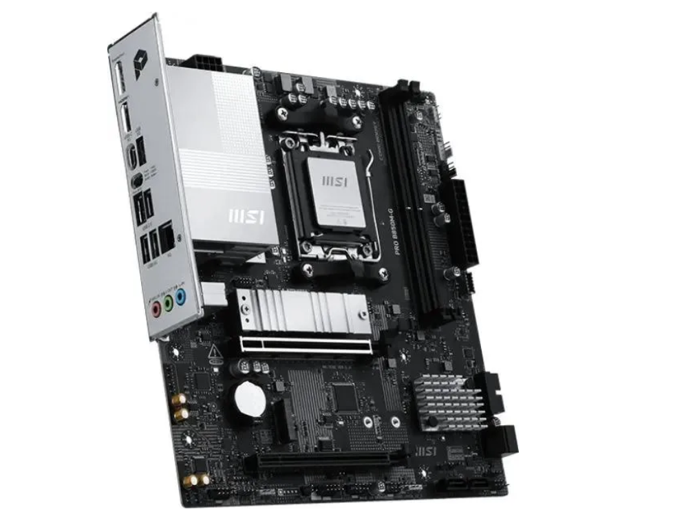 Материнская плата Socket AM5 MSI PRO B850M-G (B850) 2*DDR5 HDMI DP mATX — материнская плата формата Micro-ATX (mATX) для платформы AMD AM5. Поддерживает процессоры AMD Ryzen 9000, 8000 и 7000 серий. Особенности: два слота DDR5 DIMM, поддерживающие до 128 ГБ оперативной памяти в двухканальном режиме; четыре порта SATA 6 Гбит/с и два слота M.2; один из слотов M.2 поддерживает высокоскоростной интерфейс PCIe 5.0 x4, другой — PCIe 4.0 x4.