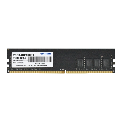 4-гигабайтная оперативная память Patriot Signature [PSD44G240081] станет для вас отличным выбором, если вам нужен скоростной модуль памяти DDR4 сравнительно небольшого объема. Эта память является оптимальным вариантом для комплектации домашнего или офисного компьютера, рассчитанного на использование типового набора программ. Модель обладает впечатляющей пропускной способностью: 19200 МБ/с. Память характеризуется таймингами 17-17-17-39, и использует тактовую частоту 2400 МГц. Есть возможность использовать и другие частоты: 1600, 1866 и 2133 МГц. Оперативная память Patriot Signature [PSD44G240081] использует для питания напряжение, равное 1.2 В. Чипы памяти установлены с одной стороны модуля. Высота модуля памяти стандартна для такого класса устройств: она равна 31,25 мм. Информация о кратких технических характеристиках устройства расположена на наклейке, которая нанесена на чипы памяти. В качестве упаковки модуля памяти использован пластиковый мини-бокс, который надежно защищает память от повреждений в процессе транспортировки.