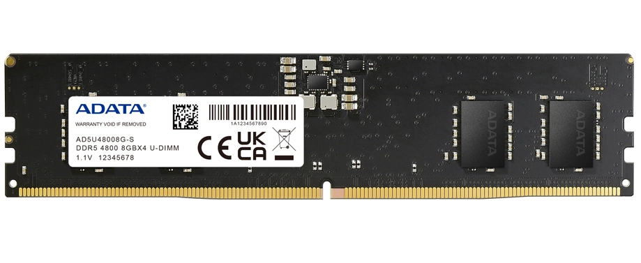 Модуль памяти A-Data DDR5-4800 U-DIMM отличается сверхвысокой частотой до 4800 МГц, а это значительный скачок по сравнению с максимальной частотой модулей DDR4 (3200 МГц). Память DDR5 поколения расходует всего 1,1 В, что на 8% экономичнее, чем у DDR4. Более того, он оснащен интегральной схемой управления питанием (PMIC) для повышения стабильности подачи электропитания. Архитектура этого модуля памяти позволяет использовать больше групп блоков памяти и сегментов. На той же площади можно упаковать большее количество блоков памяти в модуль, удвоив возможности DDR4 и значительно увеличив емкость памяти.