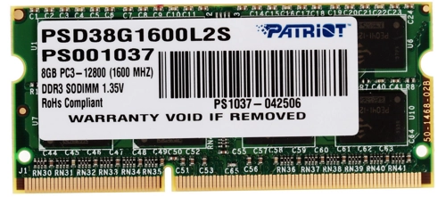 Оперативная память SODIMM Patriot Signature PSD38G1600L2S 8 ГБ позволит расширить объем ОЗУ в вашем устройстве. Производство осуществляется с применением качественных компонентов, они гарантируют надежность. Идеальные характеристики будут важны при эксплуатации. Форм-фактор планки – SODIMM. Такие элементы используются для портативных ПК. Плашка устанавливается в выделенный слот на материнской плате, процесс монтажа прост. При желании вы сможете самостоятельно добавить модуль в систему. Планка относится к типу DDR3L. Она обладает прекрасными характеристиками для дальнейшего использования. Рабочая частота – 1600 ГГц, обеспечивается быстродействие системы. Вы сможете легко переключаться между приложениями, работать с рядом программ одновременно. Оперативная память Patriot Signature PSD38G1600L2S 8 ГБ оснащается 16 чипами, они устанавливаются с двух сторон. Рабочее напряжение модуля составляет 1.35 В. Объем памяти – 8 ГБ, этого достаточно для комфортного дальнейшего использования. При помощи плашки можно модернизировать ноутбук и улучшить его характеристики.