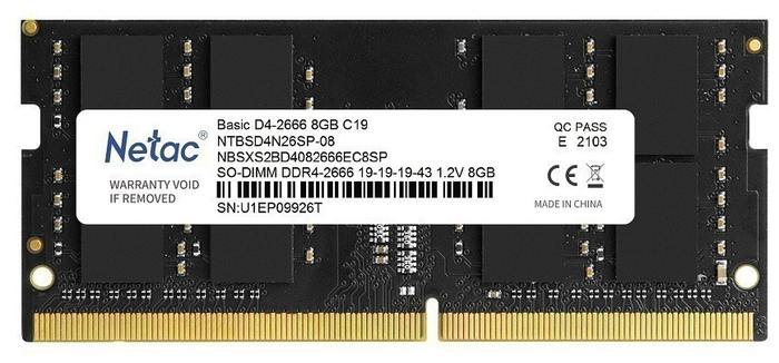 Оперативная память произведена с учетом требований современных компьютерных систем, что гарантирует ее универсальность и надежность. Модуль относится к классу DDR4, обладает емкостью 8 ГБ и 260-контактным модулем SODIMM. Предельная частота работы устройства достигает 2666 МГц, а пропускная способность – 21300 Мб/с.