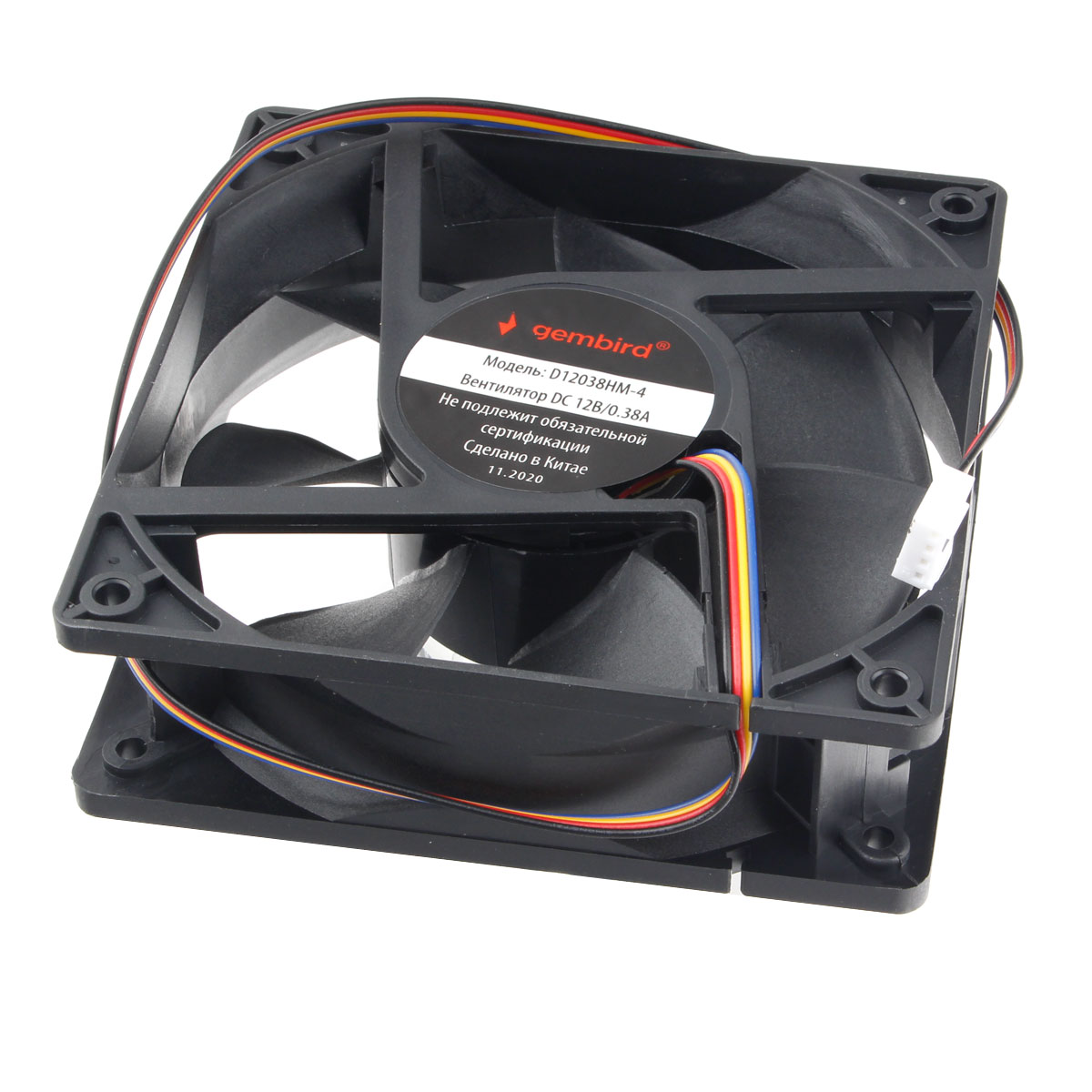 Вентилятор 120 х 120 х 38 мм, Gembird D12038HM-4 питается от 12В, имеет датчик оборотов и подключается к 4-pin коннектору. Благодаря использованию гидродинамического подшипника вентилятор обладает увеличенным ресурсом работы до 40 000 ч.