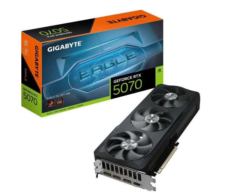 Видеочипсет: NVIDIA GeForce RTX 5070, 2587 МГц; 5 нм Память: 12 ГБ GDDR7, 28000 МГц; 192 bit Интерфейс: PCI-E 5.0 Разъемы: Display Port х 3, HDMI х 1 Питание: 16 pin, рекомендовано 750 Вт Охлаждение: активное; WINDFORCE; с тепловыми трубками Особенности: трассировка лучей; поддержка DLSS; с подсветкой