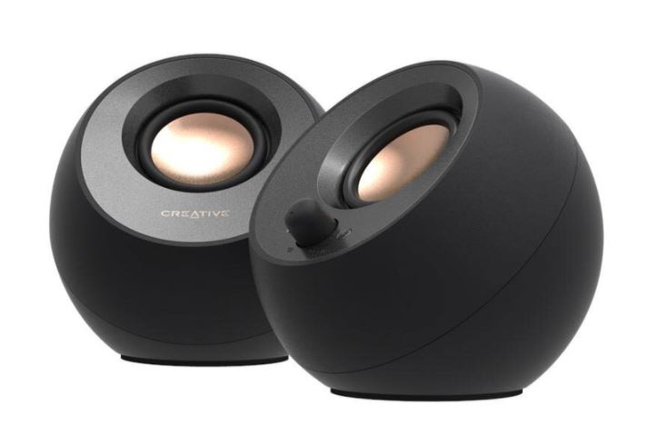 Необычной формы шарообразные колонки Bluetooth Creative Pebble V3 MF1700 по праву привлекают к себе внимание. Они отличаются суммарной мощностью 8 Вт. Регуляторы на передней панели. Работа в частотном диапазоне 100 Гц - 17 кГц. Широкополосный динамик диаметром 2.25\". Динамики находятся под углом 45 градусов к горизонтальной поверхности, что обеспечивает направление звука прямо на пользователя и создает эффект погружения. Небольшие колонки Bluetooth Creative Pebble V3 MF1700 работают от USB соединения. Имеется возможность передачи потока по Bluetooth. Размеры равны 123х120х118 мм. Общий вес акустики 670 г.