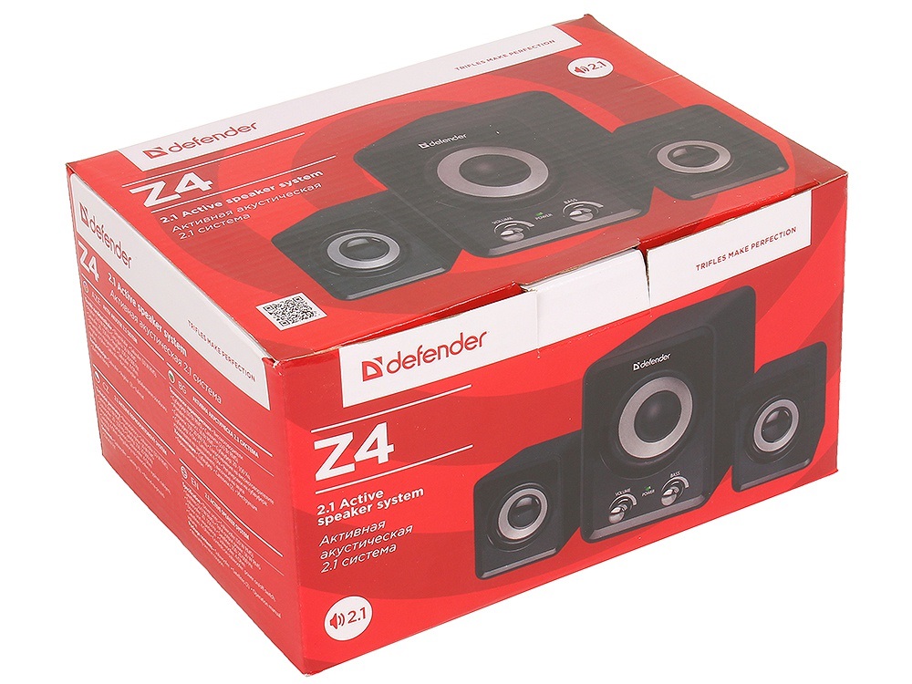 Если вам необходим качественный источник звука в компактном корпусе, то колонки Defender Z4 станут для вас отличным выбором. Модель соответствует формату 2.1: в комплект колонок входят 2 сателлита и сабвуфер. Диапазон воспроизводимых частот составляет от 20 до 20000 Гц: этот параметр гарантирует вам качественное звучание музыки и любых звуковых эффектов. Суммарная мощность акустической системы составляет 11 Вт, из которых 5 Вт приходятся на сабвуфер. Колонки Defender Z4 используют проводное подключение. Устройство не требует подключения к электрической сети: колонки получают питание от USB-порта. Преимуществом колонок является магнитное экранирование динамиков. На лицевой стороне сабвуфера расположен индикатор питания. В наличии также поворотные регуляторы низких частот и уровня громкости. Колонки и сабвуфер изготовлены из износостойкого пластика. Компоненты аудиосистемы характеризуются компактными размерами: габариты сабвуфера составляют 97x128x120 мм, а сателлитов 62x74x120 мм.