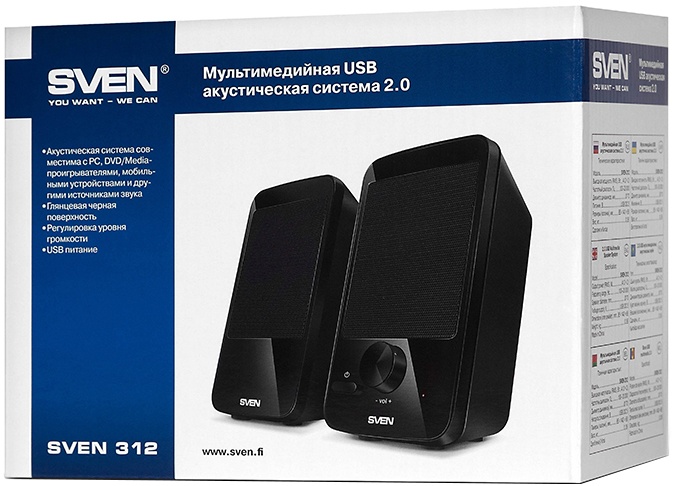 Если вы ищете простые и надежные колонки, обратите внимание на колонки SVEN 312, являющиеся примером хорошего качества звука. Модель 312 от компании SVEN работает от USB и не требует наличия розетки. Пара динамиков по 2 Вт воспроизводит звук на частотах от 100 до 20000 Гц. На переднюю панель пластикового корпуса вынесена кнопка питания и ручка регулировки громкости. SVEN 312 это акустическая система 2.0 на все случаи жизни. Поездка на природу, проведение презентации, игры в дороге или, может быть, фильм, лежа в кровати, с хорошим звуком доставят вам гораздо больше удовольствия.