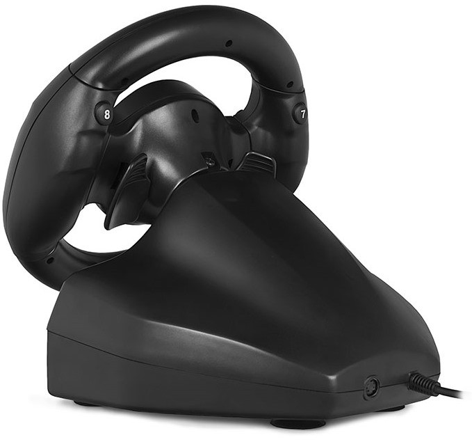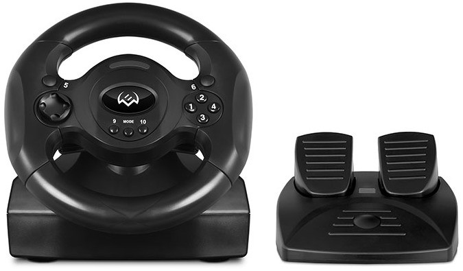 Руль проводной SVEN GC-W500 Эргономичный руль для игр Поддержка: DirectX 7.0 и выше, Windows XP/Vista/7 и выше Функция виброотдачи для повышения реалистичности во время игры Резиновые вставки в руле для комфортного вождения Резиновые присоски и скоба для надежной фиксации к столу Работа в цифровом и аналоговом режимах Педали в комплекте
