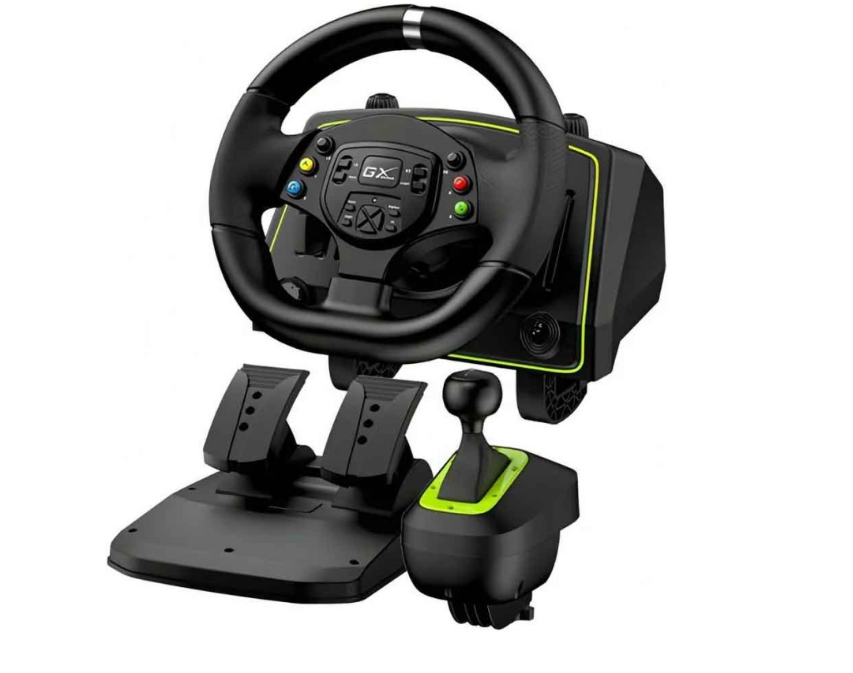 Руль Genius SpeedMaster X2, черный - высокопроизводительный гоночный руль, предназначенный для платформ PC, PlayStation и Xbox. Он предлагает вращение на 1080 градусов, что усиливает реализм гоночных игр.