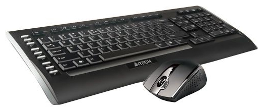 Набор Клавиатура+мышь A4Tech 9300F представлен в серебристо-черном цвете и поставляется с батарейками и USB-удлинителем. Светодиодная мышь с габаритами 7.1x3.9x10.8 см питается от одной AA-батарейки, оснащена четырьмя кнопками и горизонтальной прокруткой. Данная модель подходит только для управления правой рукой. Полноразмерная клавиатура A4Tech 9300F питается от двух AA-батареек, оснащена отдельным цифровым блоком и привлекает внимание наличием подставки для рук и влагозащищенной конструкцией. Предусматривается 114 низкопрофильных клавиш при наличии 11 дополнительных кнопок и функций (Fn). Беспроводное подключение осуществляется через USB-адаптер и действует на расстоянии до 15 м.