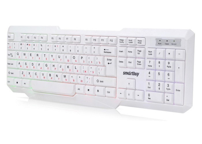 Без клавиатуры SmartBuy SBK-333U-WK эксплуатация стационарного компьютера будет затруднена отсутствием возможности ввода текста. Представленная модель умело сочетает в себе привлекательный черно-белый дизайн и надежность конструкции. Устройство относится к клавиатурам мембранного типа и оборудовано 104 клавишами. Стильный внешний вид этой модели удачно дополняет мягкая подсветка клавиш, представленная зеленым, красным и фиолетовым цветами. Еще одним плюсом в пользу приобретения данной клавиатуры является цифровой блок, с которым удобно работать при обработке больших объемом числовой информации. Клавиатура SmartBuy SBK-333U-WK имеет классическую полноразмерную конструкцию и заключена в пластиковый корпус. Матовое покрытие препятствует образованию на поверхности устройства отпечатков пальцев. Подключение представлено стандартным проводным типом: длинный шнур оборудован USB-разъемом на конце, который подключается в системный блок компьютера. Питание клавиатуры производится по шине через упомянутый кабель.