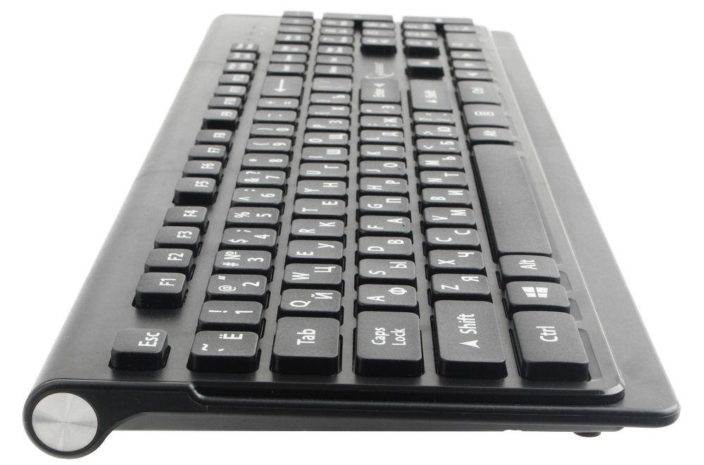 Gembird KBS-7200 - беспроводной комплект, состоящий из клавиатуры и оптической мыши. Клавиатура имеет ультратонкий корпус и отличается удобными низкопрофильными клавишами островного типа. Эргономичная мышь обладает компактными размерами и оснащена чувствительный сенсором, обеспечивающим уверенную работу манипулятора на различных поверхностях. С помощью отдельной кнопки разрешение сенсора можно изменить в пределах 800/1200/1600 dpi. Комплект работает в радиусе 10 метров на частоте 2.4 ГГц, исключающей помехи от других беспроводных устройств. Питается клавиатура от 2-х батареек AAA, а мышь от 1 батарейки AA, которые входят в комплект поставки. Для экономии заряда батарей в устройстве используется 3-х уровневая система энергосбережения.