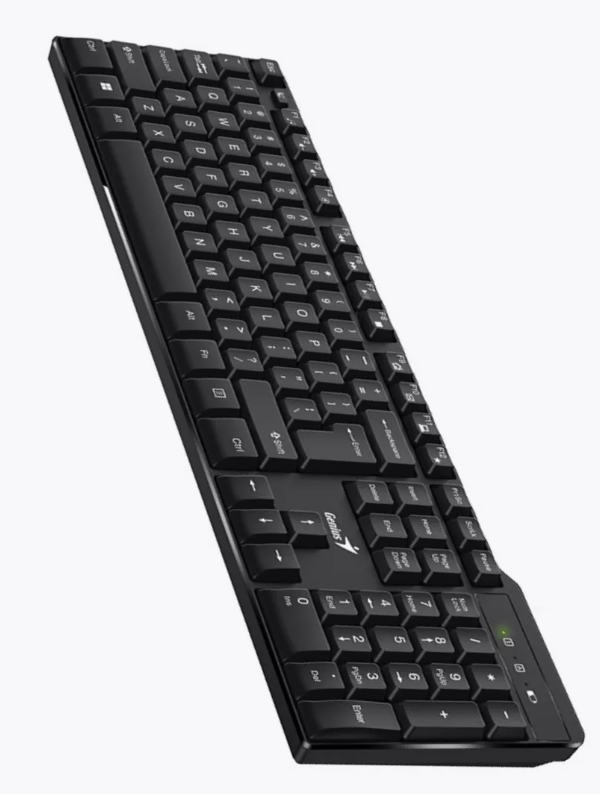 Классическая беспроводная клавиатура Genius KB-7100X. Подключение: 2.4 GHz. 12 мультимедийных клавиш. Клавиша Sleep Key. Защита от воды. Тип клавиш: вогнутые.