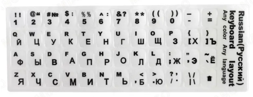 Наклейки для клавиатуры в основном используются для русификации ноутбуков, так же замены заводского шрифта и цвета, на более яркий и легко воспринимаемый глазу. В некоторых случаях служит для сохранения поверхности клавиш в первозданном виде. Идеально подходит для тех, кто много печатает или играет!