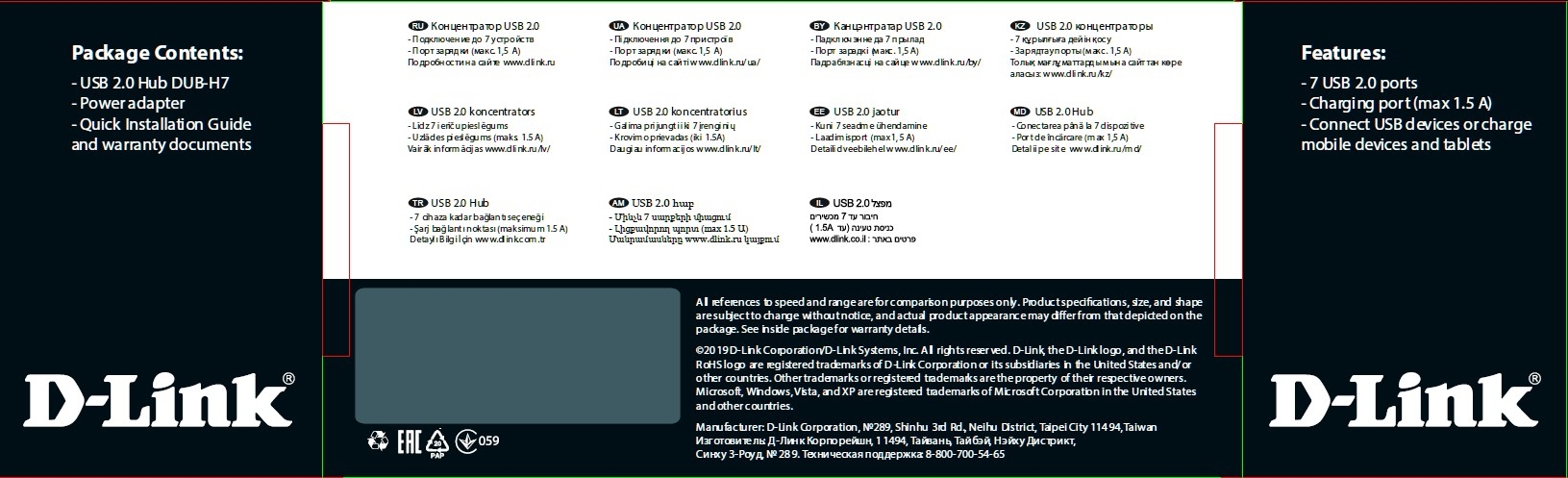 DUB-H7 — это 7-ми портовый концентратор для шины Universal Serial Bus USB 2.0, который позволяет подключить до 7 периферийных и других устройств USB 2.0 к ПК или iMac.