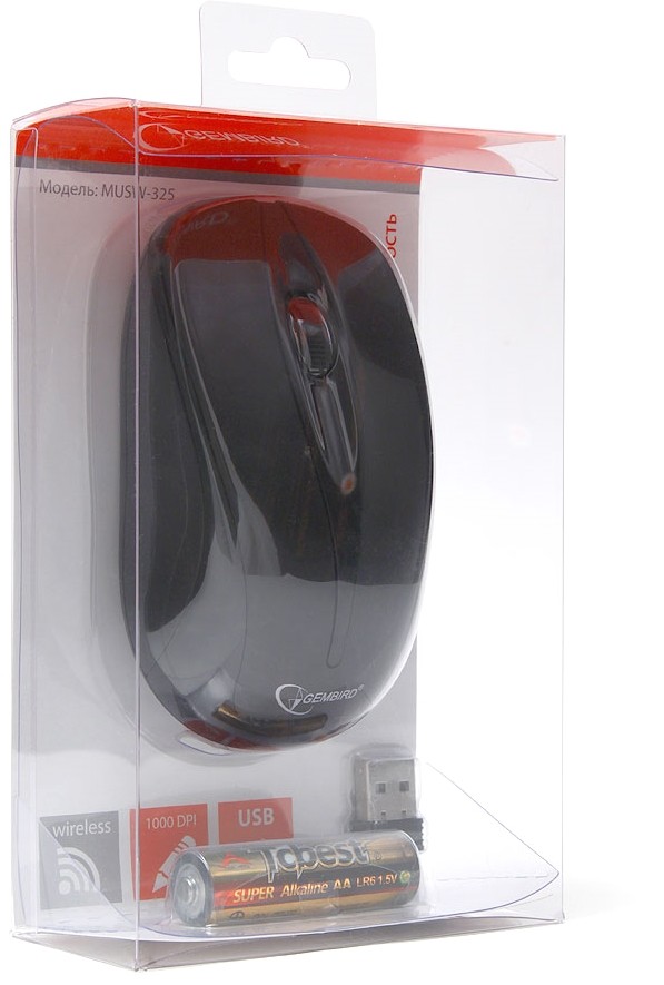Gembird MUSW-325 - компактная беспроводная мышь, имеющая симметричный корпус. Данная модель имеет оптический сенсор с разрешением 1000 dpi. Подключение к компьютеру или ноутбуку обеспечивает компактный ресивер. Питание данной модели осуществляется от одной батарейки типа АА.