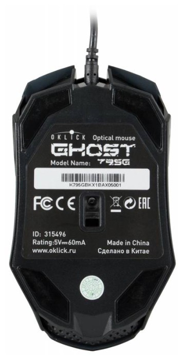 Интересный дизайн компьютерной проводной мыши Oklick 795G GHOST привлечет внимание многих пользователей. По внешнему виду корпус мыши похож на голову робота. Эргономичная форма позволяет ей удобно располагаться в ладони, рука не будет уставать после длительной работы. Прорезиненное покрытие обеспечивает ударную прочность, а пальцы не будут скользить. Мышь отлично подходит для геймеров и тех, кто проводит много времени за компьютером. В функциональном плане модель снабжена пятью кнопками и колесиком для прокрутки страниц. Помимо стандартных кнопок, на левой стороне корпуса располагаются две клавиши: Вперед и Назад. Дополнительно имеется возможность менять разрешение до 2400 dpi на выбор из трех вариантов (переключатель находится сверху). Данная опция необходима в играх, когда нужно быстро менять настройки мыши. К компьютеру мышь Oklick 795G GHOST подключается через интерфейс USB.