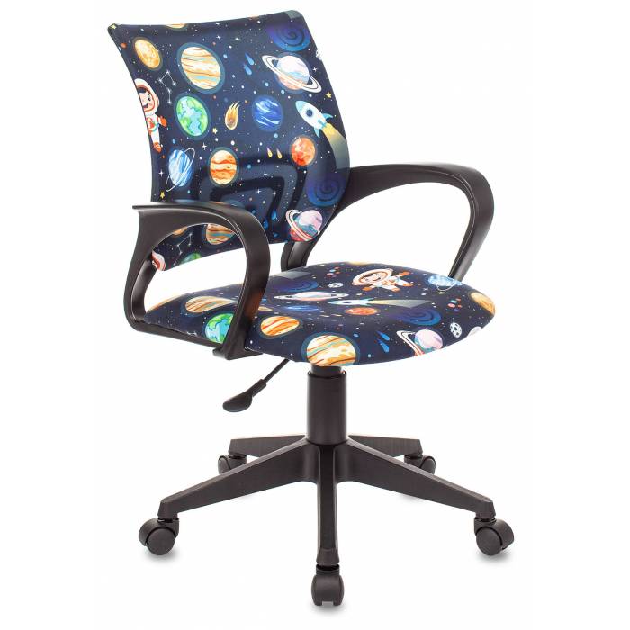 Кресло Бюрократ BUROKIDS 1 (ткань, без мех. качания, крест. пластик, до 120 кг) Черный, космонавт