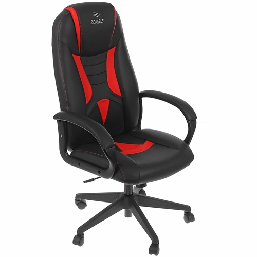 Кресло Zombie 10 (текстиль/эко.кожа, без мех. качания, крест. пластик, до 120 кг) Черный/красный