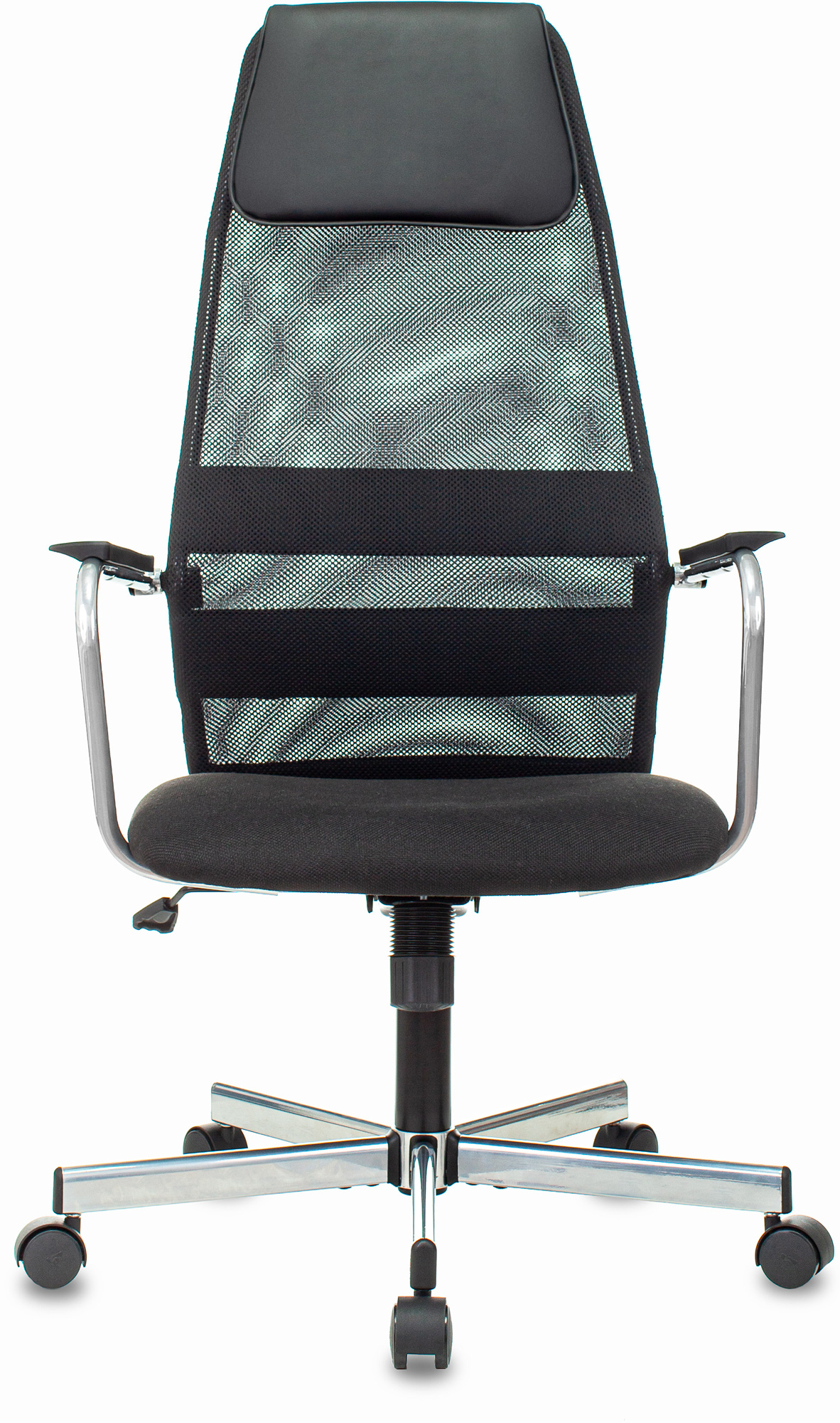 Кресло Бюрократ KB-5M (сетка/ткань, с подголов., мех. качания, ручки и крестовина хром, до 120 кг) Черный