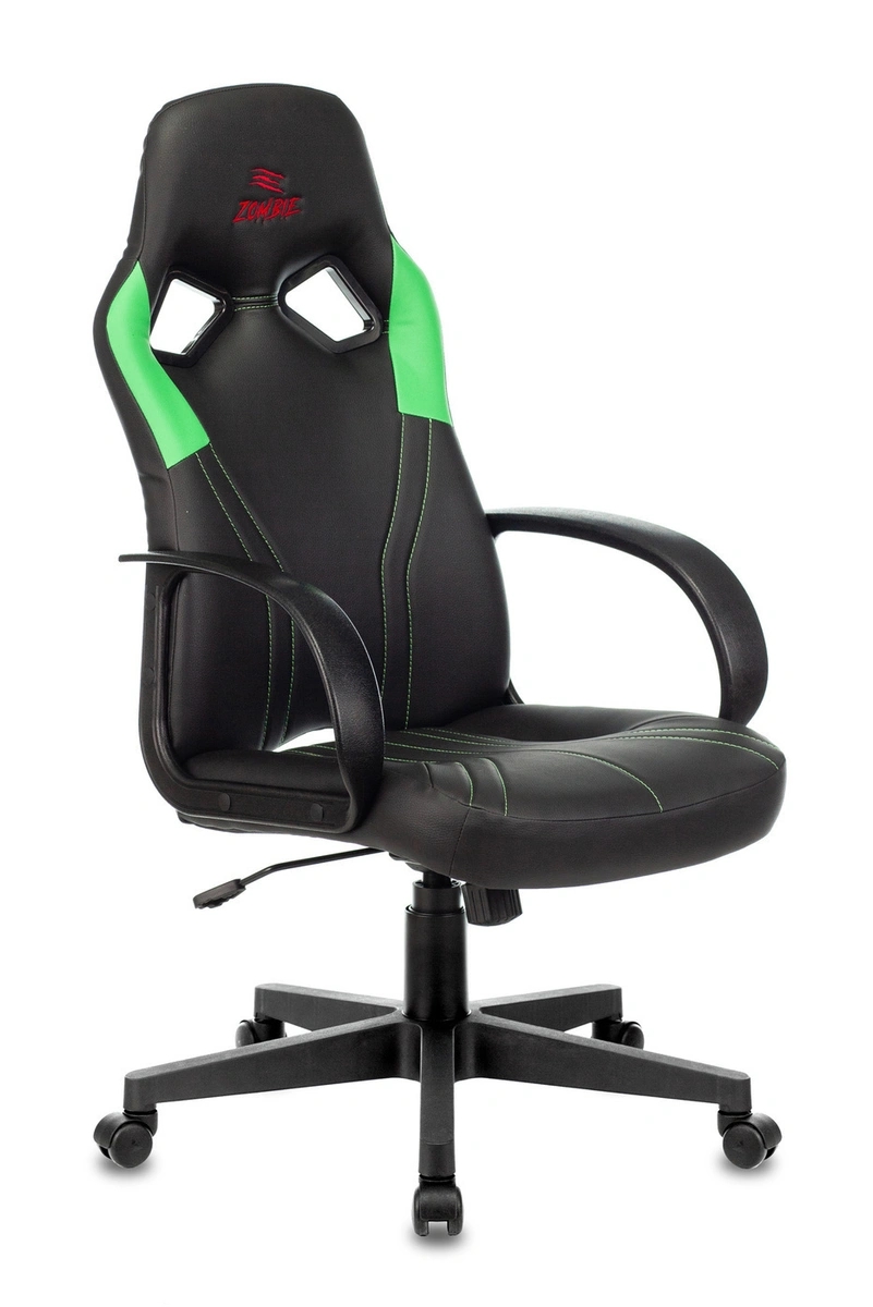 Кресло Zombie RUNNER (эко.кожа, мех. качания, крест. пластик, до 120 кг) Черный/зеленый