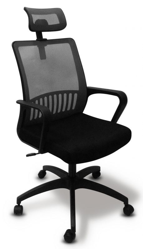 Кресло Бюрократ MC-201-H (сетка/ткань, мех. качания, крест. пластик, с подголов., до 120 кг) Черный