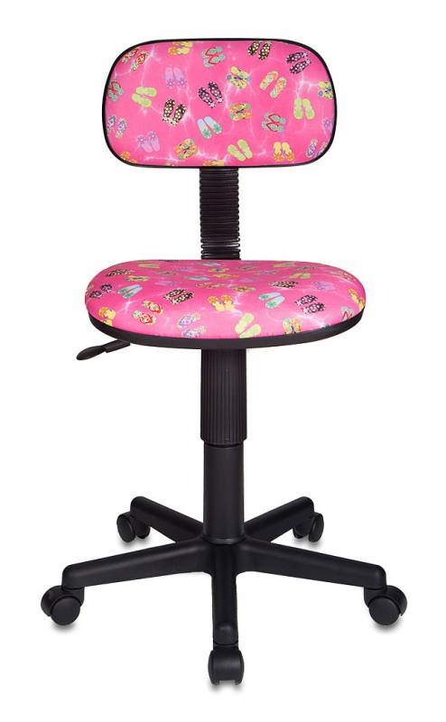 Компактное детское кресло Бюрократ CH-201NX/FlipFlop_P c тканевой обивкой розового цвета с рисунком Сланцы, регулировкой высоты (газлифт), регулировкой глубины сиденья, ограничением по весу: 100 кг.