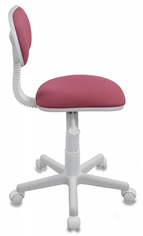 Компактное детское кресло Бюрократ CH-W201NX/26-31 c тканевой обивкой розового цвета и белым каркасом, регулировкой высоты (газлифт), регулировкой глубины сиденья, ограничением по весу: 100 кг.