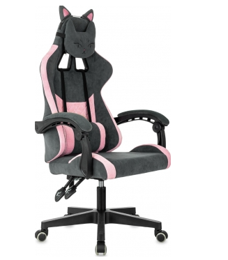Кресло Knight Kitty Fabric (ткань, фиксация наклона спинки, крестов. пластик, до 120 кг) серый/розовый — модель с фиксацией наклона спинки в любом положении, регулировкой высоты и поддержкой поясничной и шейной областей.
