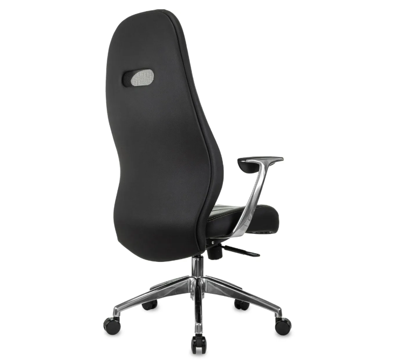 Кресло руководителя БЮРОКРАТ _Zen черного цвета — предмет мебели, без которого невозможно создать комфортабельное рабочее место. Высокое качество сборки и современные прочные материалы обеспечивают длительный срок эксплуатации модели. Основные характеристики Колесики выполнены из особого износостойкого пластика, который не оставит царапин на паркете, ламинате или линолеуме, а также обеспечит свободное перемещение по мягкой ковровой поверхности. Алюминиевая крестовина делает предмет мебели легким и способным выдержать вес до 120 кг. Особенности покрытия Покрытие кресла руководителя БЮРОКРАТ _Zen выполнено из специально обработанной натуральной кожи. Материал устойчив к истончению и истиранию, поэтому модель надолго сохранит элегантный внешний вид.