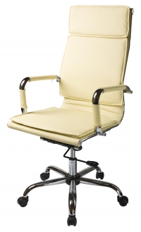 Кресло руководителя Бюрократ c обивкой из искусственной кожи, металлическим хромированным каркасом, металлическими хромированными подлокотниками с чехлами из искусственной кожи и ограничением по весу: 120 кг. Отличительной особенностью данной модели являются механизм качания с регулировкой под вес и фиксацией в вертикальном положении. Установка кресла на колесиках.