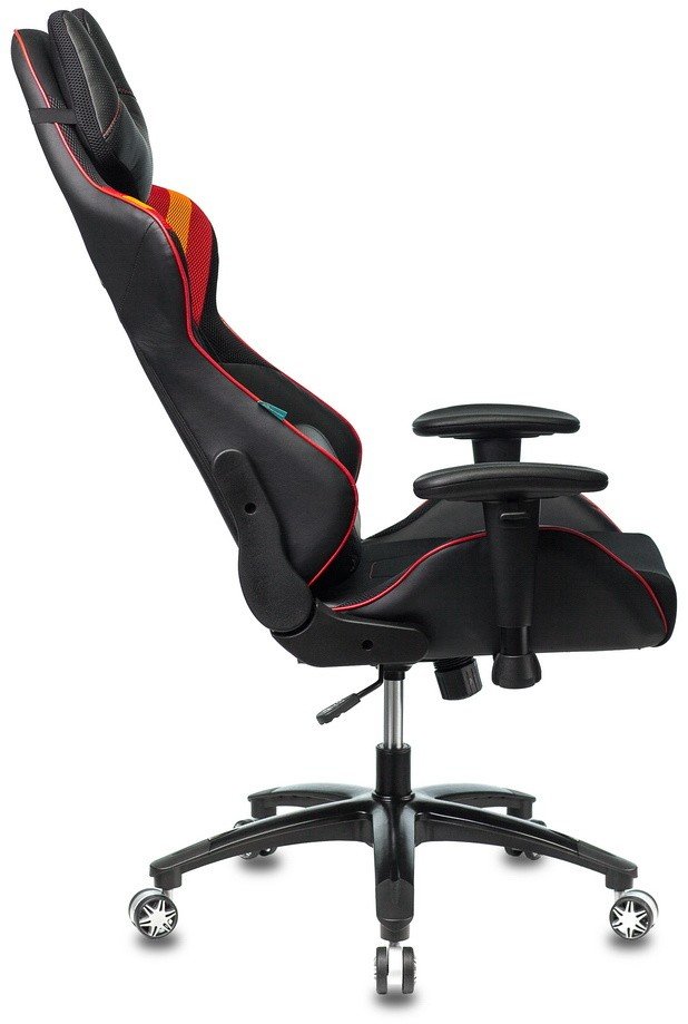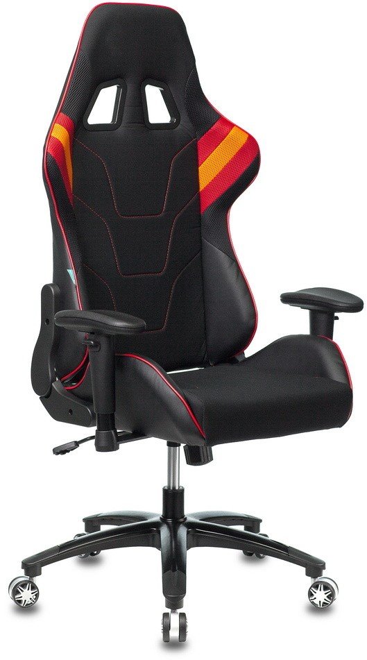 Кресло игровое БЮРОКРАТ VIKING 4 AERO– сконструировано в соответствии со всеми современными игровыми тенденциями. Предназначено для увлеченных азартных людей, геймеров – всех тех, кто достаточно времени проводит за любимым хобби. Надежная крестовина из качественного пластика обеспечивает максимальную нагрузку до 120 кг. Нужную высоту можно отрегулировать с помощью газлифта. В спинке предусмотрен механизм качания, который можно зафиксировать углом от 90 до 140 градусов. Для долгого комфорта кресло снабжено 2 подушками для поддержания шейного и поясничного отделов.Подлокотники с мягкими тканевыми накладками можно настраивать в 2 положениях. Кресло обито искусственной кожей с тканевыми вставками черного цвета, поэтому не требует сложного ухода, такая обивка прослужит долго и надежно.