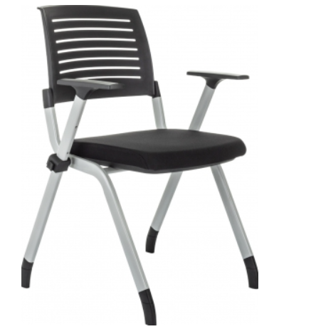 Стул Бюрократ X-Click (с подлокотниками на ножках, серый металл, до 100кг, ) Черный. Стулья штабелируются, а также имеют жесткую сцепку в ряд с помощью пластиковых замков. Есть возможность поставить эти стулья на колеса.
