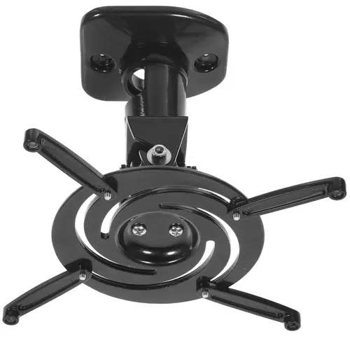 Столик для проектора Cactus CS-VM-PR01-BK черного цвета выполнен в виде кронштейна и имеет компактные размеры, что не помешает ему надежно удерживать устройство весом до 10 кг. Сам столик может быть прочно зафиксирован на потолке или стене. Для этого с ним в комплекте имеются все необходимые крепежные инструменты. При этом дистанция зафиксированного на кронштейне проектора до потолка составит 218 мм. А в случае необходимости кронштейн довольно быстро снимается. У столика для проектора Cactus CS-VM-PR01-BK размер установочных отверстий можно регулировать в пределах 17-30 см. Благодаря этому он совместим с большинством моделей проекторов. Конструкция кронштейна предусматривает возможность наклонять или поворачивать зафиксированный на нем проектор на 180°, а также вращать на 360°. Это обеспечит максимально комфортный просмотр видеослайдов.