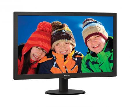 разрешение экрана — 1920 × 1080 пикселей; тип LCD-матрицы — TN; Монитор 23\" PHILIPS 233V5LSB/00/01/62 black (1920x1080, 5ms, DVI) - поверхность экрана — матовая; подсветка LCD-матрицы — на основе белых светодиодов (WLED); яркость матрицы — 250 кд/м²; контрастность LCD-матрицы — 1000:1 (статическая), 10M:1 (динамическая, SmartContrast); время отклика — 5 мс; угол обзора LCD-матрицы — 170° по горизонтали, 160° по вертикали; плотность пикселей (ppi) — 96 ppi; интерфейс монитора — VGA (15-пиновый коннектор D-sub); блок питания — встроенный; максимальное потребление энергии — 20 Вт.