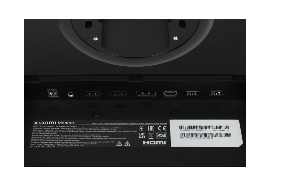 Монитор 27\" Xiaomi 4K Monitor A27Ui (IPS 3840x2160 6ms 60Hz HDMI DP USB-C) Black. Экран: 27 \", 3840x2160, 16:9, IPS, 60 Гц, 360 кд/м2, 6 мс. Контрастность: статическая 1200:1. Разъемы: DisplayPort x 1, HDMI x 2, USB Type-A х 2 шт. Мультимедиа: поддержка быстрой зарядки. Блок питания: внешний. Конструктив: регулировка высоты, регулировка наклона, поворот экрана, крепление VESA 75х75.