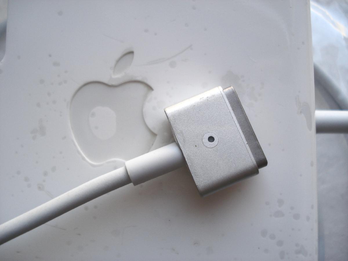 Apple 60W MagSafe 2 Power Adapter представляет собой компактный, стильный и удобный адаптер питания мощностью 60 Вт, предназначенный для зарядки литий-полимерных аккумуляторов ноутбуков MacBook PRO 13. Он собран в небольшом аккуратном корпусе из белого противоударного пластика. Подключение к лэптопу осуществляется при помощи специального штекера, оснащенного световым индикатором - если аккумулятор еще не заряжен, индикатор горит оранжевым цветом, в обратном случае - зеленым цветом. Штекер имеет очень оригинальное магнитное крепление MagSafe 2, которое значительно упрощает подключение зарядного устройства к MacBook, штекер как бы тянется сам к правильной установке в разъем. Кроме того, вся процедура зарядки становится более безопасной, так как при случайном задевании кабеля, что может повлечь за собой падение и повреждение лэптопа, разъем отсоединится самостоятельно. Шнур, идущий от адаптера питания к ноутбуку, может укладываться на удобные держатели, встроенные в корпус Apple 60W MagSafe 2.