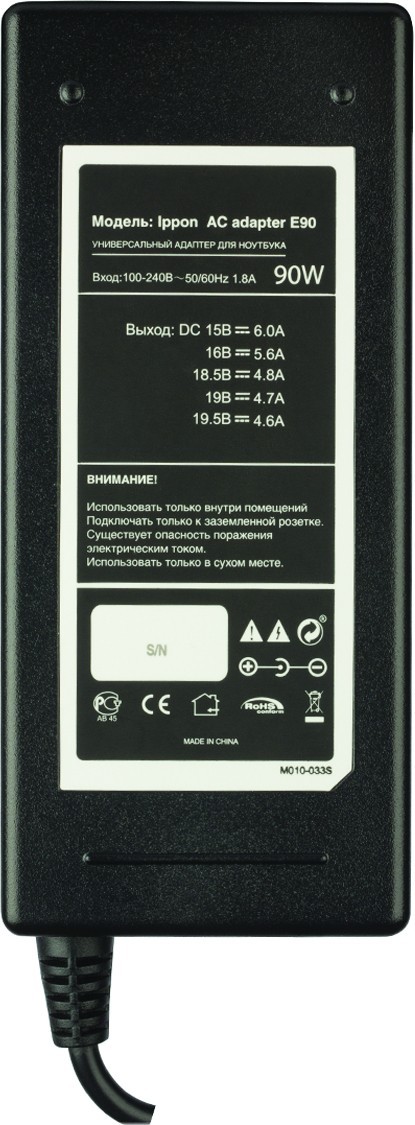 Импульсный адаптер питания IPPON E90 разработан для оперативной подзарядки различных ноутбуков. Модель комплектуется набором из 8 штекеров-переходников, каждый из которых обеспечивает номинальное напряжение и мощность для конкретной марки мобильной техники. С его помощью можно «запитать» любые модели от Acer, Samsung, Lenovo, Sony, HP, Fujitsu и IBM. Адаптер питания IPPON E90 отличается компактными габаритами и малой массой. Он практически не занимает пространства на рабочем столе, а длинный шнур позволяет переложить подключенное устройство в любое удобное место. Модель оборудована защитными предохранителями от короткого замыкания и перегрузок, что делает ее безопасной для использования в любом регионе мира.