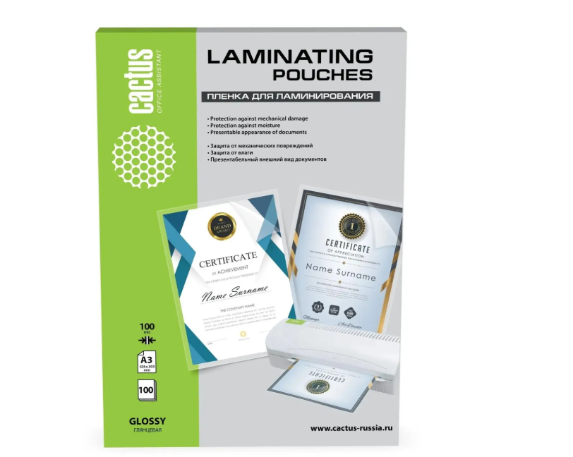 Плёнка для ламинирования Cactus (A3, 100мкм,  100шт) глянцевая