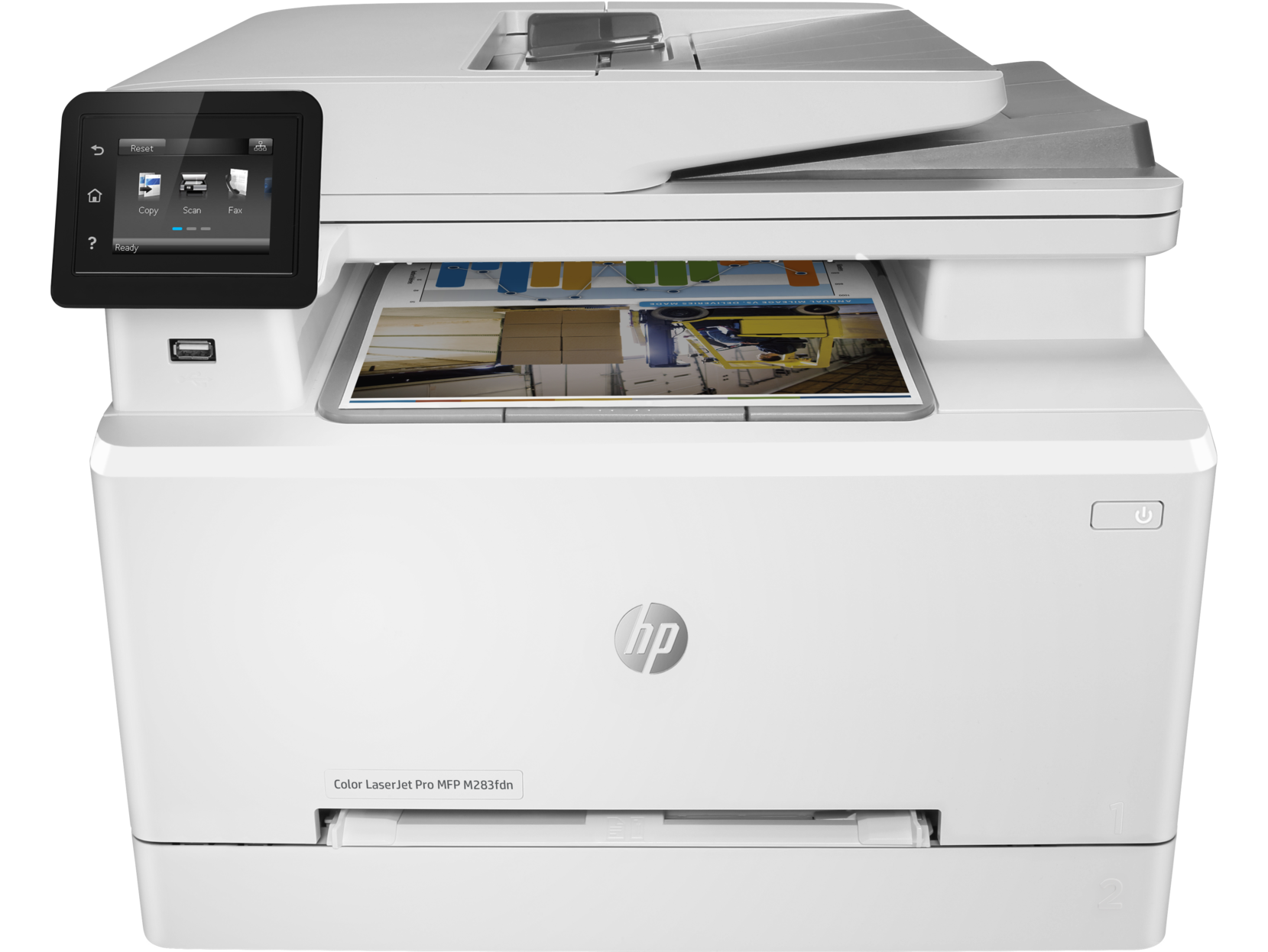 HP Color LaserJet Pro MFP M283fdn представляет собой компактное устройство, объединяющее в себе принтер, копир, сканер и даже факс. Данная модель способна работать с бумагой формата до A4. Принтер может производить как черно-белую, так и цветную печать со скоростью до 21 страницы в минуту. Для быстрого и удобного сканирования было предусмотрено устройство автоматической подачи. Отличиться высоким быстродействием сможет также копир, способный за один цикл создать до 99 копий. HP Color LaserJet Pro MFP M283fdn поддерживает подключения к сети Интернет, для чего модель оснащена разъемом RJ-45. Данная модель совместима с современными версиями операционной системы Windows и Linux.