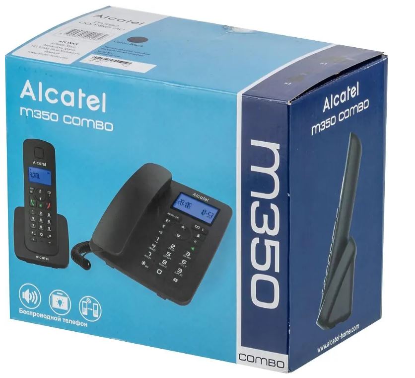 Радиотелефон ALCATEL M350 Combo RU обеспечен возможностью регулировки громкости, поддерживается полифония из 10 мелодий. База может максимально принять 4 трубки, среди которых есть проводная, оснащена наборником. База и трубка обладают функцией спикерфона, позволяющей вести общение сразу с несколькими пользователями. Предусмотрен дисплей с подсветкой, на который выводятся текущее время и дата, время звонка, а также уровень сигнала.