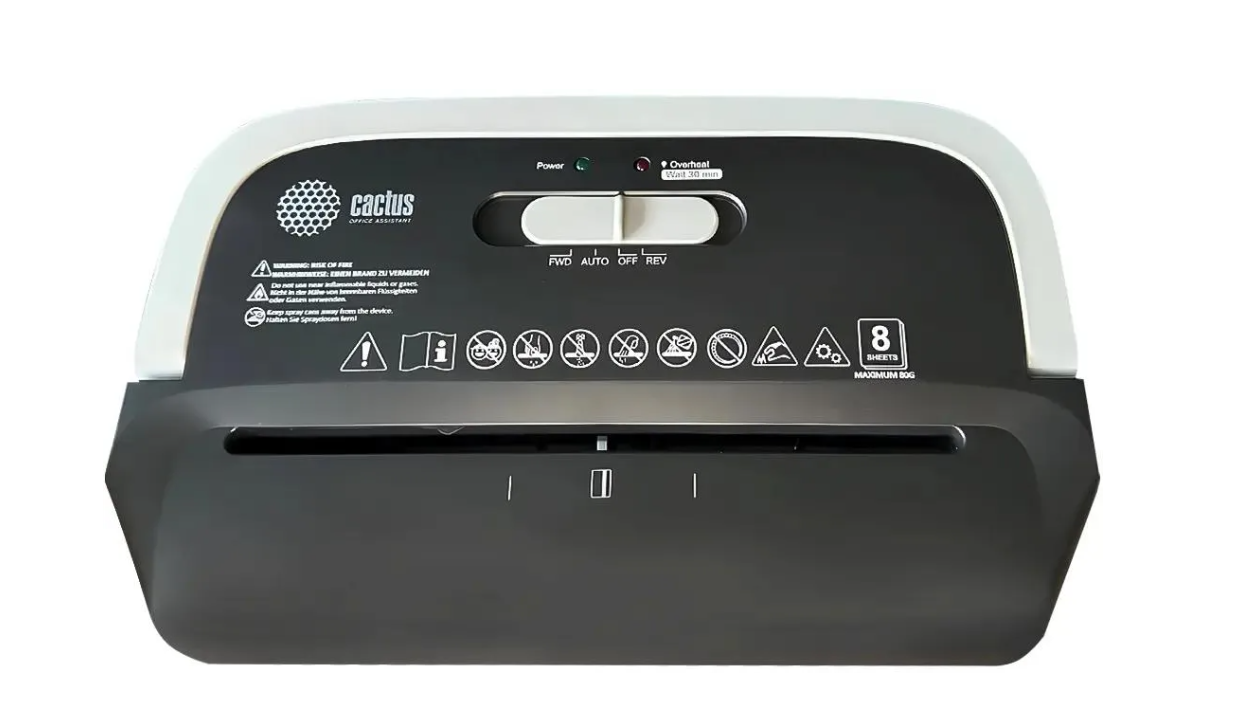 Уничтожитель бумаги Cactus CS-SH-C2 секр.P-4, фрагменты 8лист. 13лтр. черный. Особенности: функция автостарта запускает двигатель сразу после помещения бумаги в приёмное отверстие; если в механизм попало слишком много листов или посторонний предмет, система автоматически активирует реверс, чтобы безопасно извлечь материал и предотвратить замятие или перегрузку.