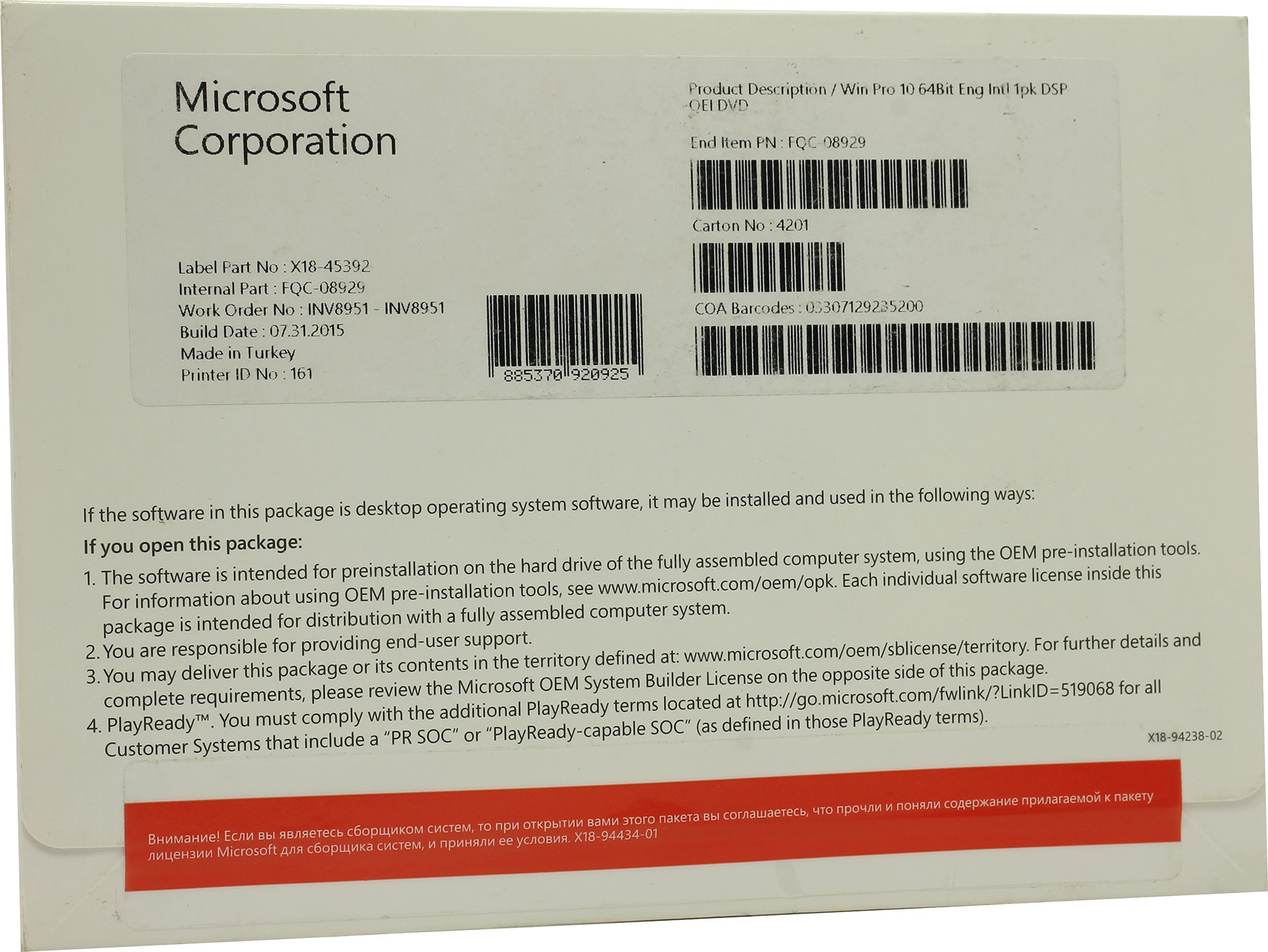 Microsoft Windows 10 Professional отлично справляется c задачами любого объема. Помимо стандартных функций, как в версии Windows 10 Home, в версии Pro также есть безопасность корпоративного уровня, мощные инструменты управления, такие как единый вход, и повышенная производительность благодаря удаленному рабочему столу и Cortana. Возможности Microsoft Windows 10: Единый магазин приложений, который позволит использовать одно и то же приложение на разных устройствах под вашей учетной записью. Windows 10 поддерживает 4K и 8K – экраны. Меню пуск (есть классический и новый с Metro-плитками). Поддержка нескольких рабочих столов, между которыми можно легко и удобно переключаться. Приложения из магазина Windows теперь могут открываться на рабочем столе в классическом виде и их размеры можно корректировать. Новый браузер Microsoft Edge пришел на смену печально известному Internet Explorer и стал намного лучше и дружелюбнее к пользователю. Для устройств-трансформеров доступен новый режим континуум, который автоматически определяет смену режима устройства и адаптирует под него Windows. Встроенные универсальные приложения для работы с фотографиями, видео, музыкой, картами, контактами, почтой и календарем. Windows 10 практически сама находит все драйвера к ПК и автоматически их устанавливает без чьей-либо помощи. Сравнение возможностей Windows 10 Домашняя и Pro: Возможности Home Professional Microsoft EdgeНовый браузер, который поддерживает ваш стиль работы в Интернете. X X Несколько рабочих столов и режим Snap1Создание нескольких рабочих столов и прикрепление четырех приложений на одном экране. X X OneDriveБесплатное онлайн-хранилище для фотографий и файлов. X X Присоединение к домену или Azure Active DirectoryПростое подключение к сети компании или учебного заведения. X BitLocker2Защита данных с помощью улучшенной технологии шифрования и управления безопасностью. X Удаленный рабочий столДоступ к рабочему компьютеру из дома или в дороге. X Hyper-V3Создание и запуск виртуальных машин. X Портал Магазина Windows для бизнеса и частный каталог. Создание собственного раздела компании в Магазине Windows для доступа к корпоративным приложениям.