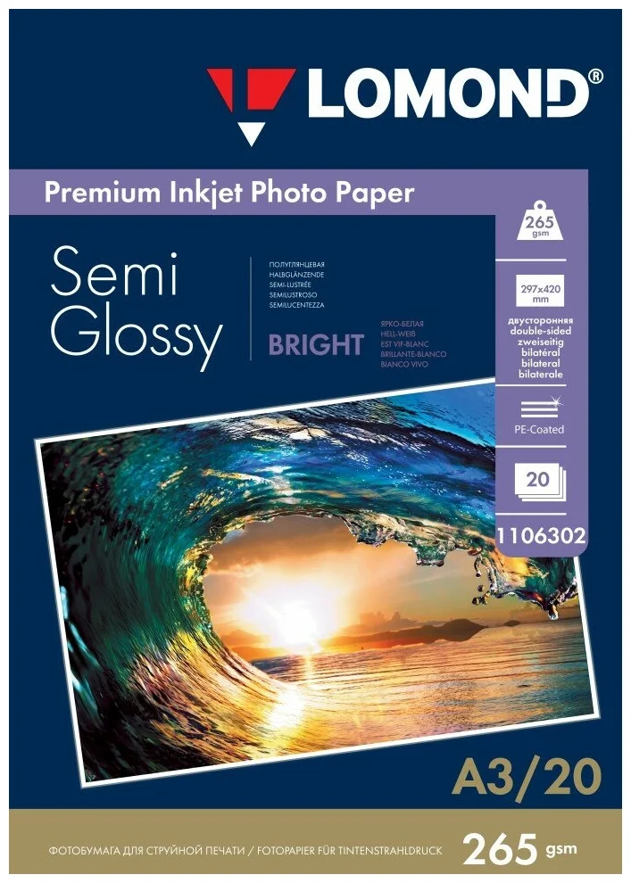 Бумага Lomond [A3] полуглянцевая, 265гр/м2, 20л